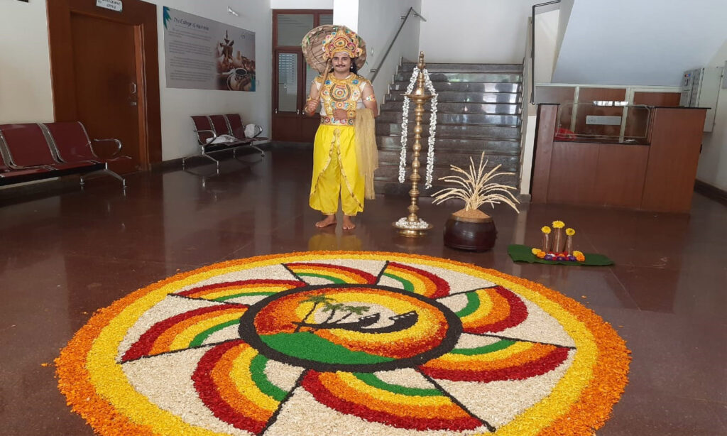 Onam celebration was observed in our college on 31/08/2020. On this occasion Dr. K.V. Chidananda, President, AOLE (R), was present and conveyed the Onam wishes to all. As part of the program Flower Matt was arranged. Onam songs were sung by students. Tiruvadira traditional dance was performed by Students. The Principal, Teaching, Non teaching, Hospital staff and PG Scholars, Junior Doctors and Students were present in this occasion. Suddi Sullia Chanel had aired the program in this occasion.