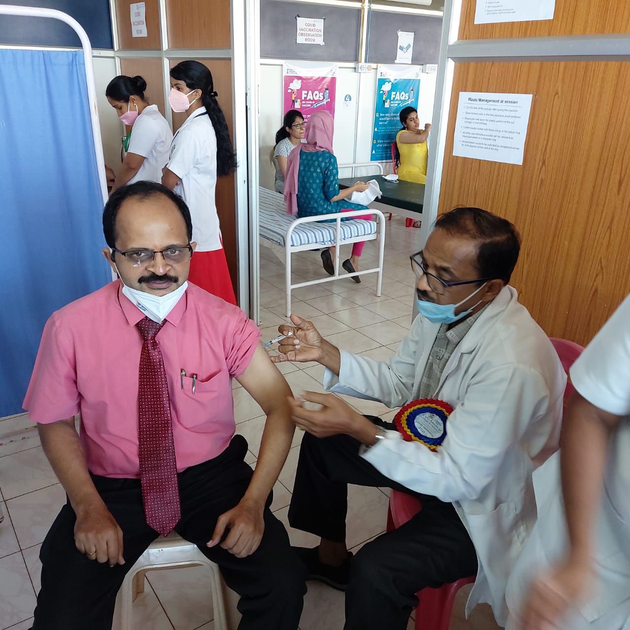 In the National Vaccination Program for COVID 19 disease held at K.V.G. Medical College, our college was a part of this Mega Vaccination Drive. Our staff and students were Vaccinated and also promoted the importance of Vaccination to the Public as well.
