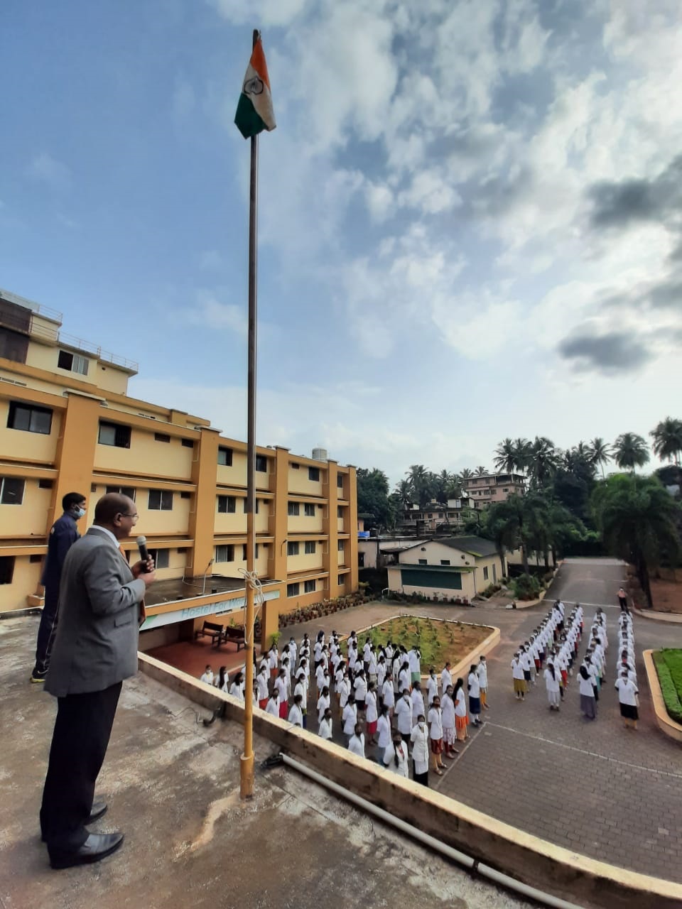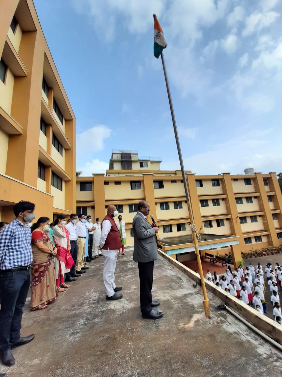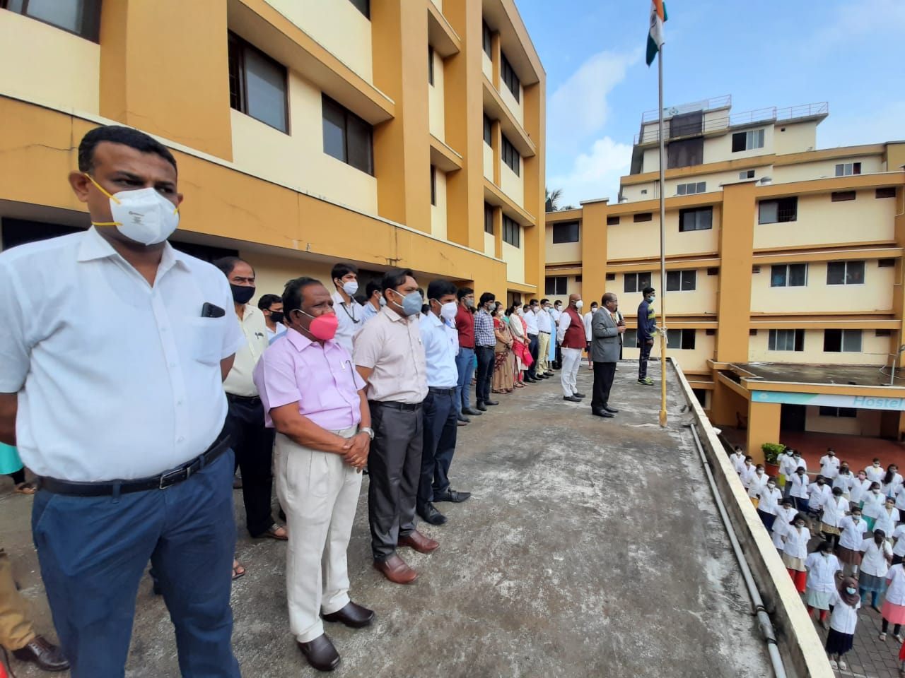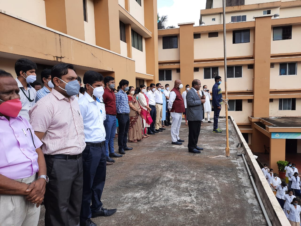 To mark the 75th year of Independence we celebrated the Independence day. Dr. K.V.Chidananda, President AOLE (R), hoisted the National Flag and delivered the message of Independence day. He also explained to the gathering the way freedom struggle which had taken place in Sullia also. Mrs. Shobha Chidananda Treasurer AOLE (R) Sullia, Mr. Akshay K.C Director AOLE (R),Sullia, Dr. Aishwarya Director, AOLE (R), Sullia were present. Principal Prof.Dr.Leeladhar D.V, all the faculty, Teaching, Non teaching and Hospital Staff, P.G students, Interns, UG students participated in the celebrations.