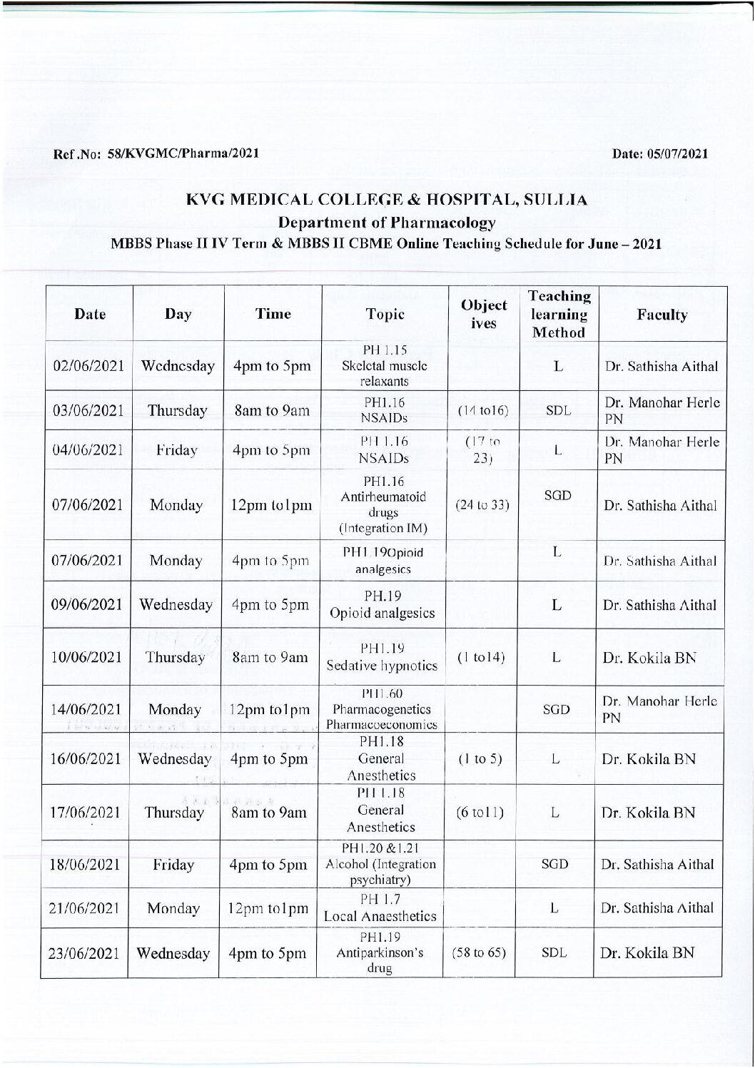 Resourse Person : Dr. Avinash K V., Professor, KVG Ayurveda Medical