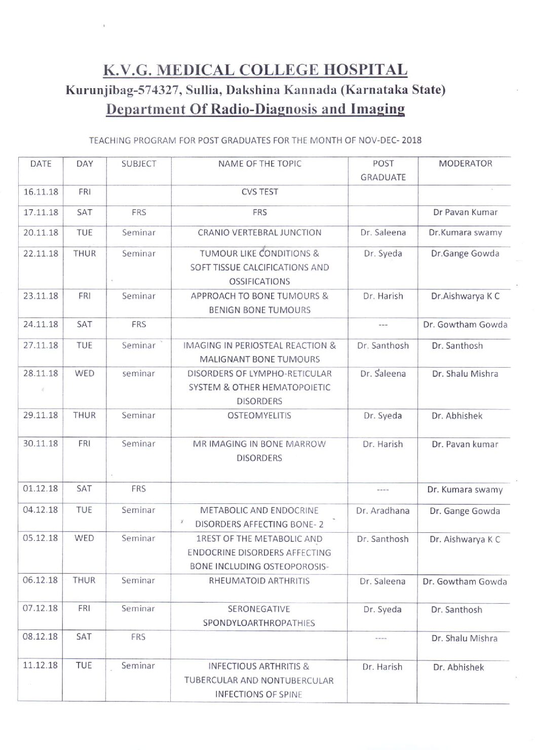 Dr.Harshavardhan K. lead the team and guided the aspiring young Medical students participated in K.V.G MEDICAL COLLEGE,Sullia. Dr Neelambikai Natarajan Dean Medical College, inaugurated the session. About 195 People actively participated in the program.