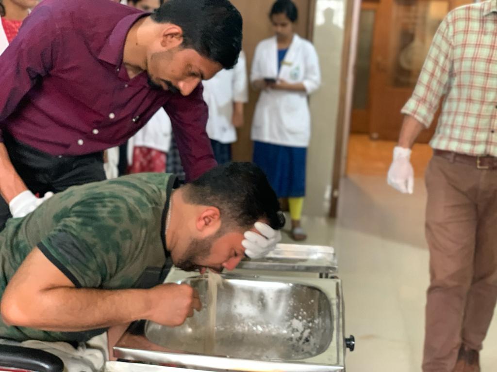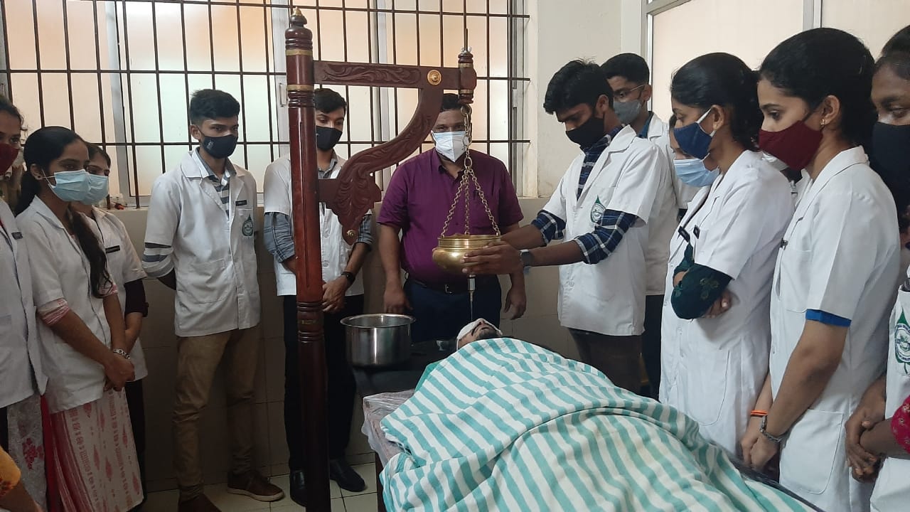 Panchakarma department is well established with a classroom, department library with classical and contemporary books related to the panchakarma, well equipped Panchakarma theaters (male & female separate) and museum with several specimens of panchakarma procedure, etc for inferring knowledge to students. Post-graduation in panchakarma was started in the year 2008, with six post-graduation students in take per year. Department has come up with practice like weekly presentation of seminar, attending the OPD & IPD, case presentations, Panchakarma procedure demo presentation, journal reading and many other which are required for present scenario. Panchakarma presents a unique approach of Ayurveda with specially designed five procedures of internal purification of the body through the nearest possible route. Such purification allows the biological system to return homeostasis and to rejuvenate rapidly and also facilitates the desired pharmocotherapeutic effects of medicines administered thereafter. Panchakarma has a full therapy role as promotive, preventive and curative procedures. To assist individuals to heal, develop and maintain a healthy lifestyle our integrated approach to health and well being combines Ayurveda and Yoga traditional approaches.