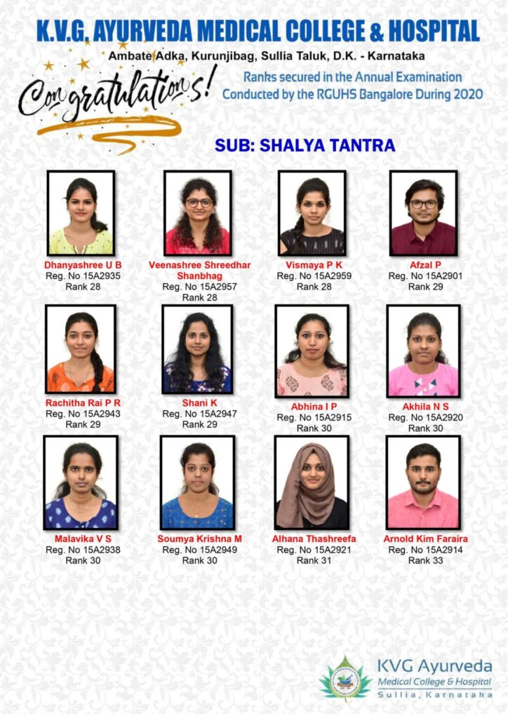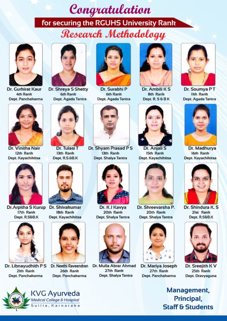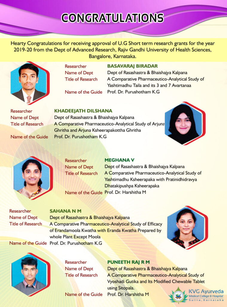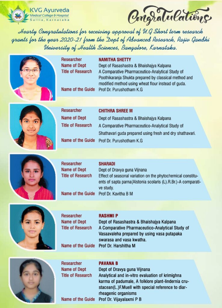 DEPT. OF PG STUDIES IN RASASHASTHRA & BHAISHAJYA KALPANA. KVG AYURVEDA MEDICAL COLLEGE & HOSPITAL, SULLIA.