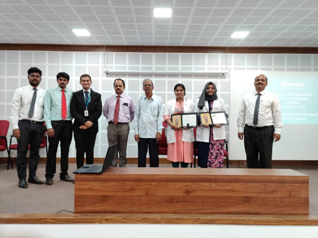 The Himalaya Drug Company gave away its annual awards Jeevaka and Ayurvisharada to the first and second rank holders in the final year BAMS RGUHS examinations. Dr. Ashina Shahin and Dr. Anjali M M bagged the awards.