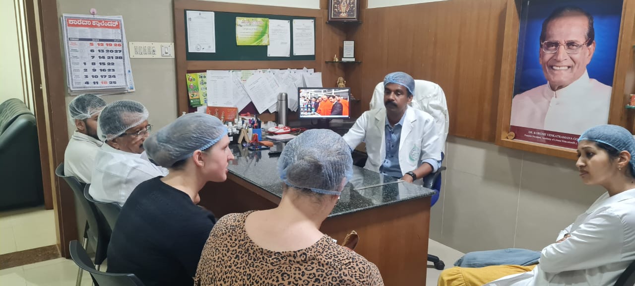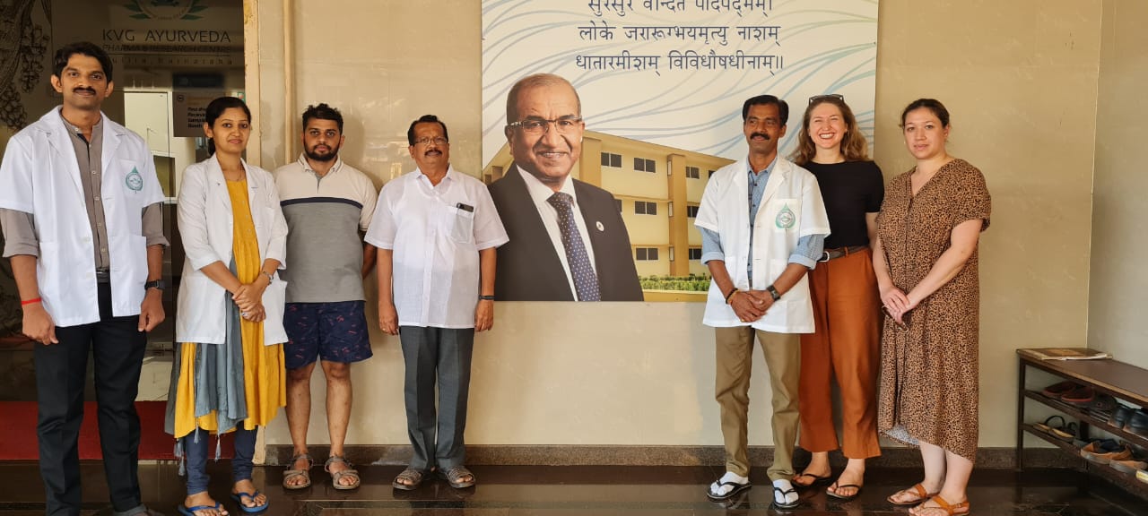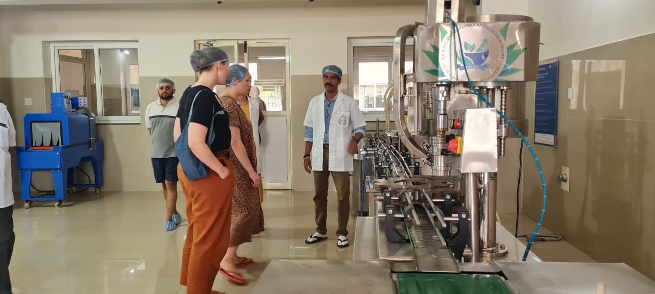 On 13.02.2023 visitors from Germany- Carolina and Sharon along with Mr. M.B. Sadashiv, President, M.B Foundations, Sulliavisited KVG Ayurveda Pharma and Research Centre. CEO Dr. Purushotham K.G explained about different sections of our production unit, ongoing production, working of different instruments, maintaining the standards and quality of our products and other details.Theywere overwhelmed to visit our place and to know about manufacture of Ayurveda medicines, discussed many other related aspects and even purchased few of our products. They appreciated the hygiene, maintenance, working nature of our firm and wished us success. Dr. Harshita M, Professor and Dr.Gopalkrishna, Asst. Prof., Dept of Rasashastra and Bhaishajya Kalpana assisted during their visit.
