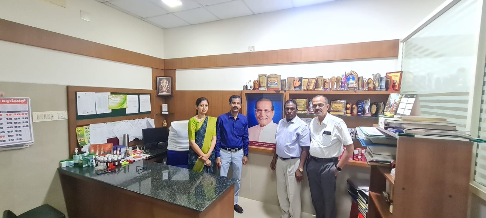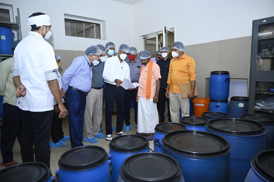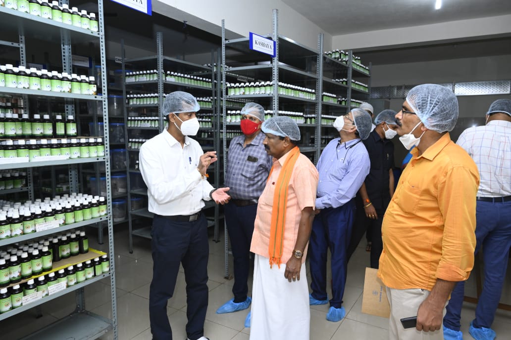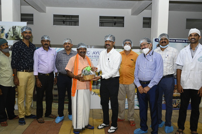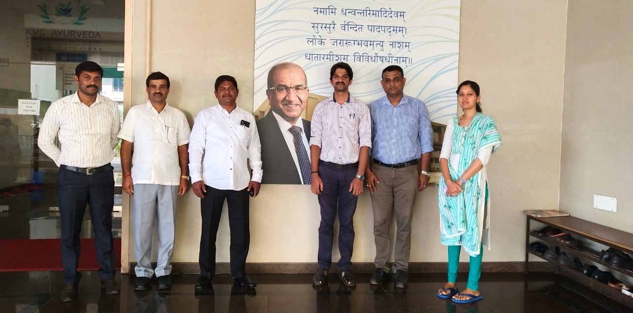 Dr. Shrinivas Bannigol Principal / Medical Superintendent Sanjeevini Ayurveda medical college and hospital Hubballi, Dean (ISM), Rajiv Gandhi University of Health Sciences, Bangalore, Former CCIM member along with Dr. Anand Kirishal, former executive member CCIM, Treasurer AFI, Senate member RGUHS visited KVG Ayurveda Pharma and Research centre on 29/10/2021. They visited the Production and quality control sections of the pharma. They appreciated the hygiene, maintenance and production quality of the pharma.