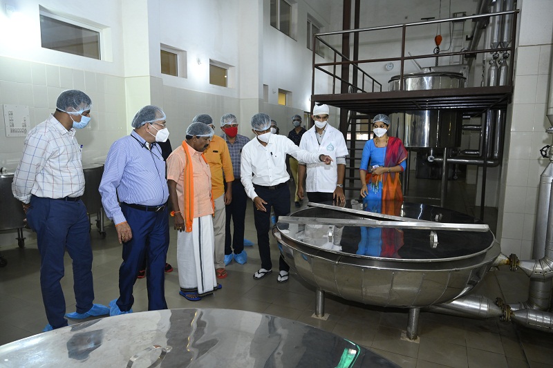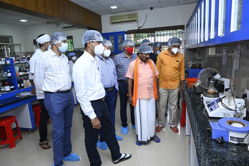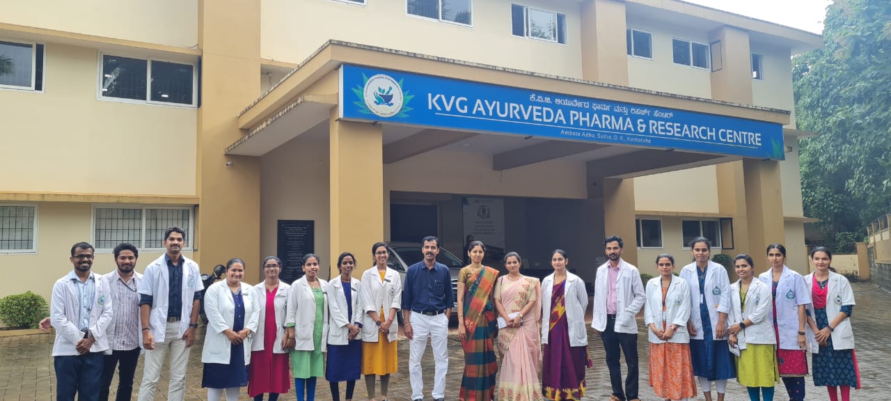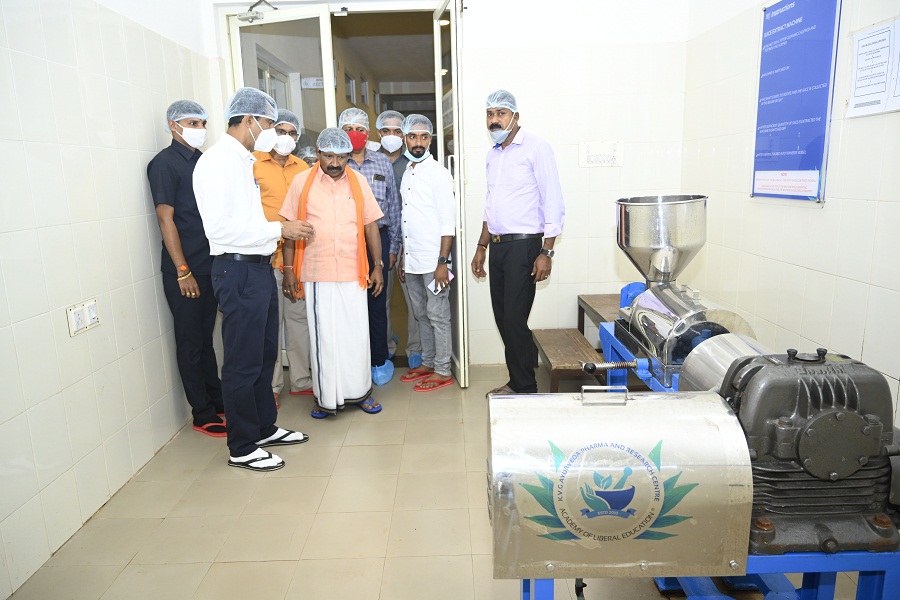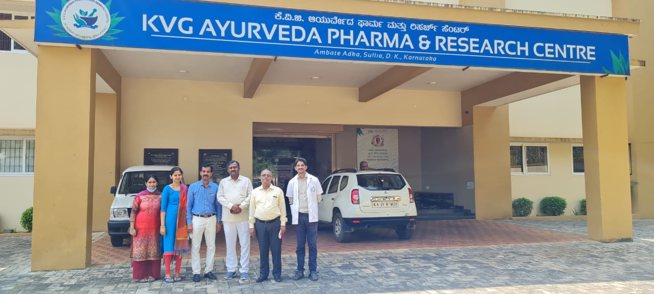 Dr. Kiran M Goud, Principal, Sri Kalabyraveshwara Swamy Ayurvedic Medical College and Research Centre, Bangalore along with his administrative staff visited KVG Ayurveda Pharma & Research Centre, Sullia on 26/11/2021 to know the functioning of the Pharmacy, Quality control unit and related aspects of GMP.