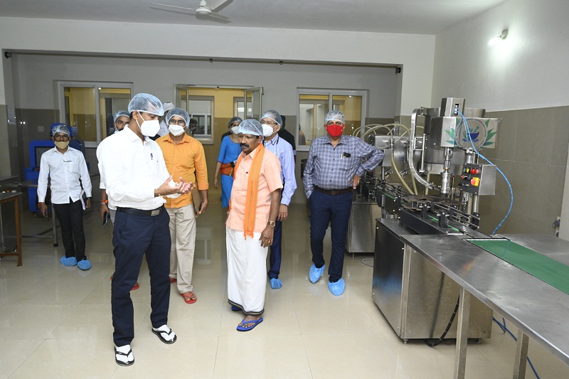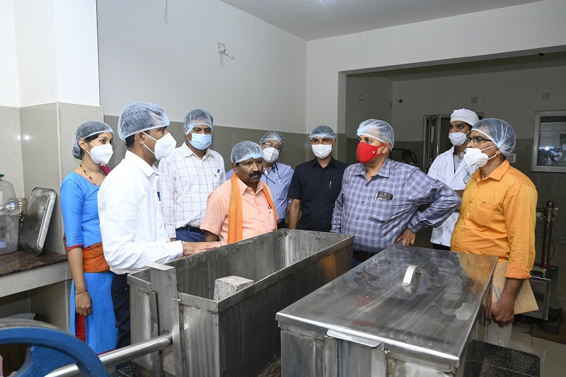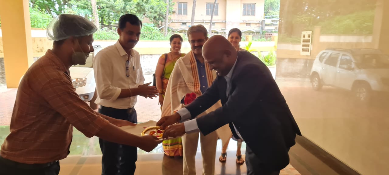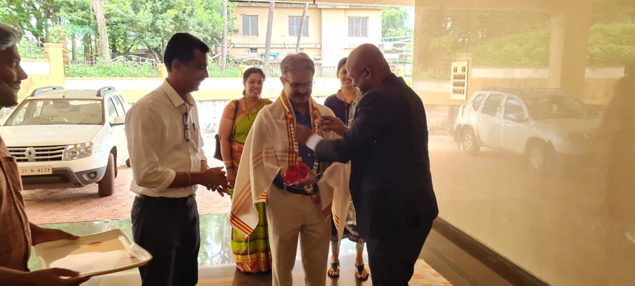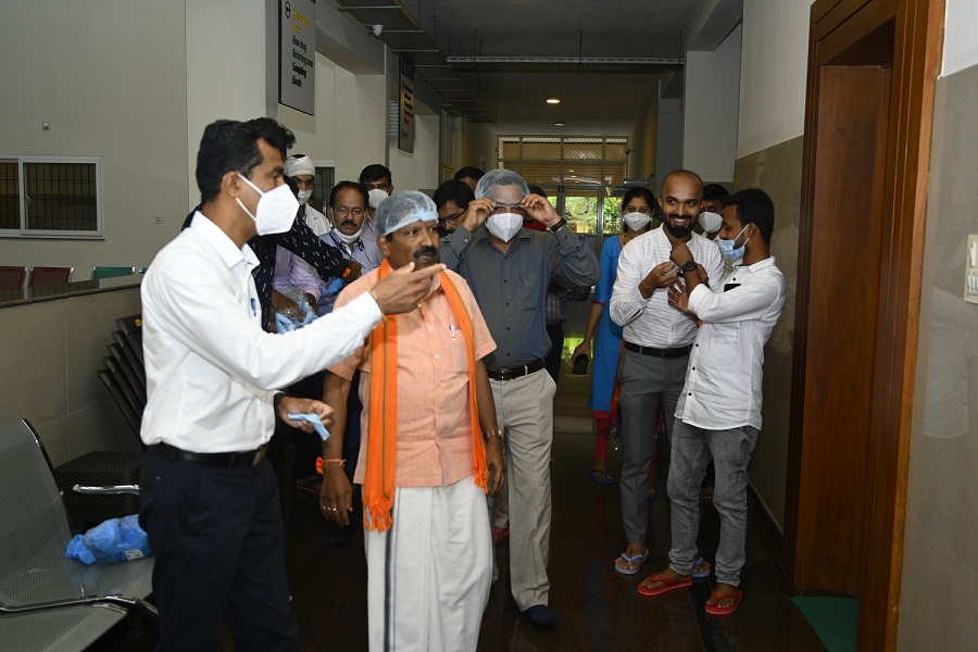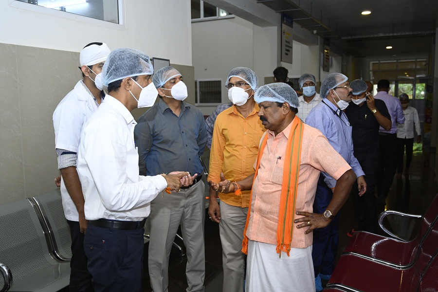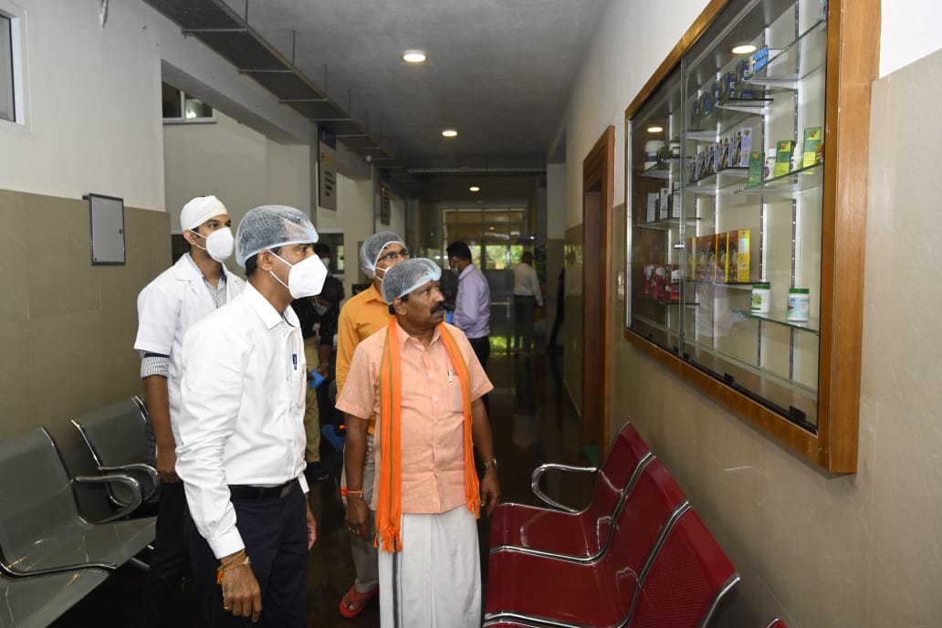 Minister of State for Fisheries, Ports and Inland Transport Department Govt. of Karnataka Mr. S. Angara visited K.V.G. Ayurveda Pharma and Research centre on 4.09.2021. He visited all the sections of the Pharmacy including the Production and Quality control department. He wholeheartedly appreciated the ongoing works of pharmacy under the aegis of K.V.G Ayurveda Medical College and Hospital. He wished the Pharma a grand success. Dr. Purshothama K.G. Prof. & Head, Department of Rasashastra and Bhaishajya Kalpana briefed about the Functioning of K.V.G Ayurveda Pharma and Research Centre. Minister was accompanied by the President of the city council Mr. Vinay Kumar Kandadka, Joint Director of Fisheries Mangalore Mr. Harish Kumar, Director of Fisheries Bangalore Mr. Ramacharya and other office bearers of Fisheries Dept., Govt of Karnataka and all the supportive staffs of K.V.G Ayurveda Pharma and Research Centre were present during his visit.