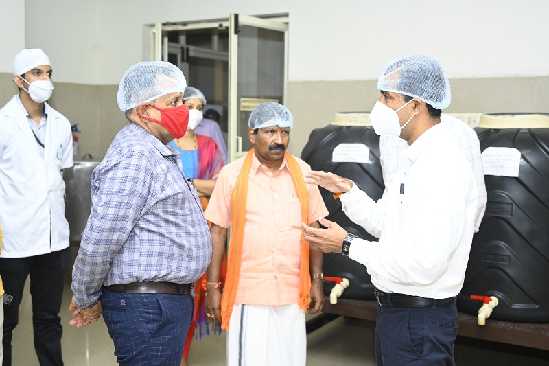 Dr. Ashok Kumar B.N. Associate Professor, Department of Rasashastra and Bhaishajya Kalpana, SDM College of Ayurveda, Udupi visited KVG Ayurveda Pharma and Research centre on 29/06/2022. He visited the Production, and quality control sections of the pharma. They appreciated the hygine, mainatence of the pharma and research centre.