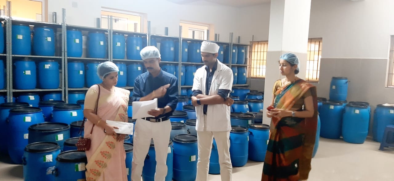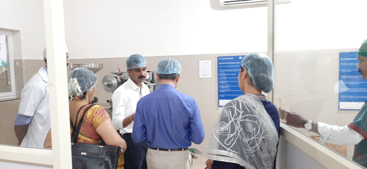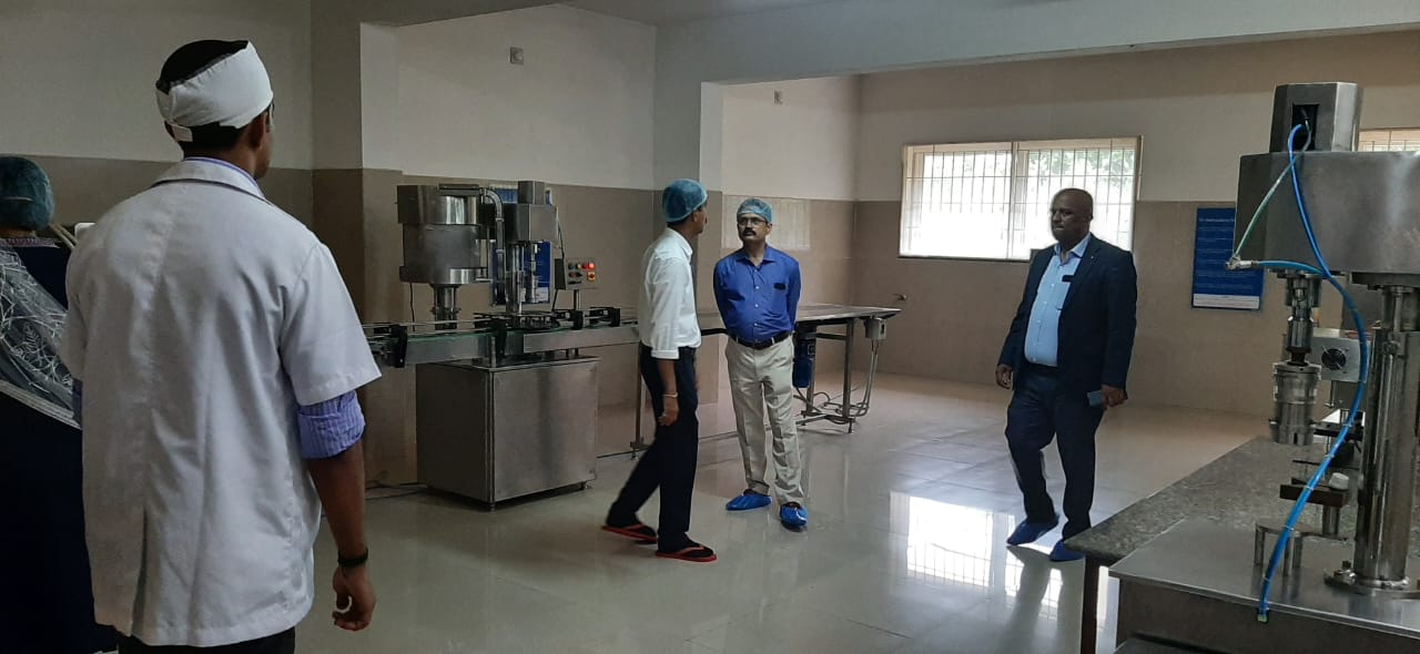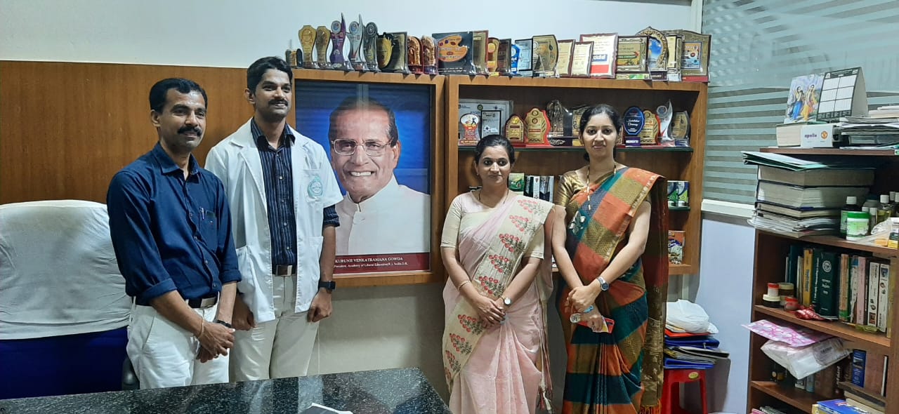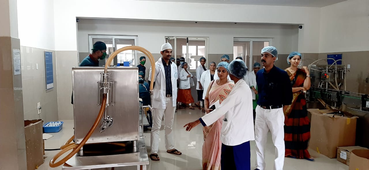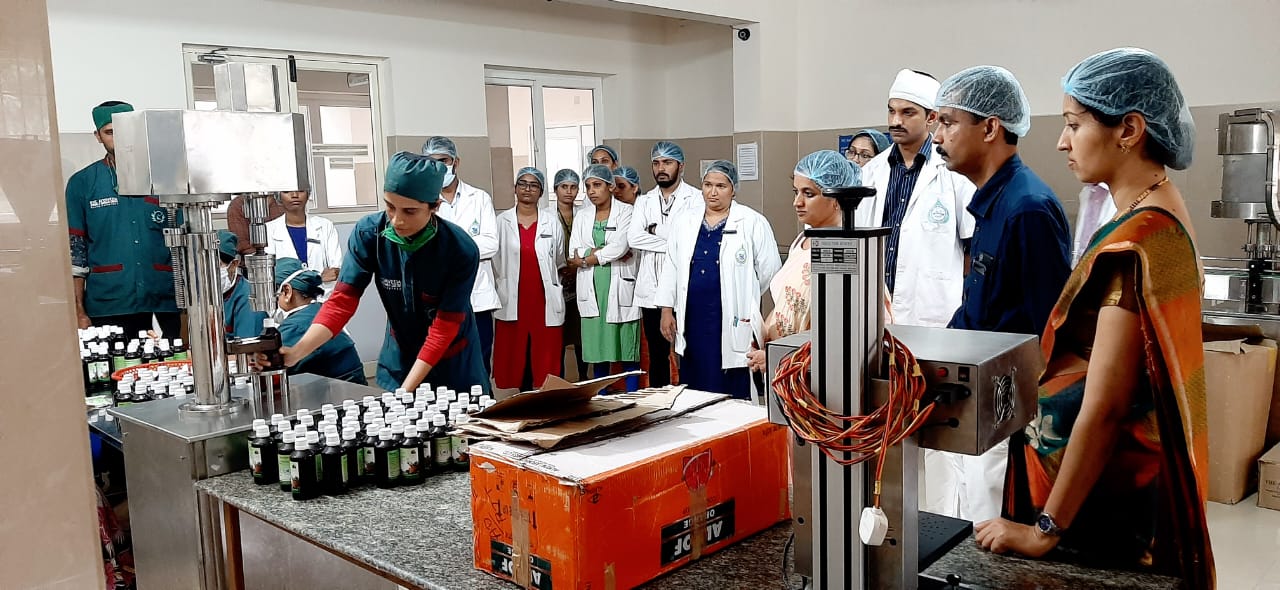 Our beloved Director, Academy of Liberal Education, Sullia Mr. Akshay K.C. introduced him to our Manufacturing unit and accompanied them. CEO Dr. Purushotham K.G. explained about different sections of our production unit, ongoing production, working of different instruments, maintaining the standards and quality of our products and other details. They appreciated the hygiene, maintenance andworking nature of our firm Dr. Gopalkrishna, Asst. Prof., Dept. of Rasashastra and Bhaishajya Kalpana assisted during their visit.