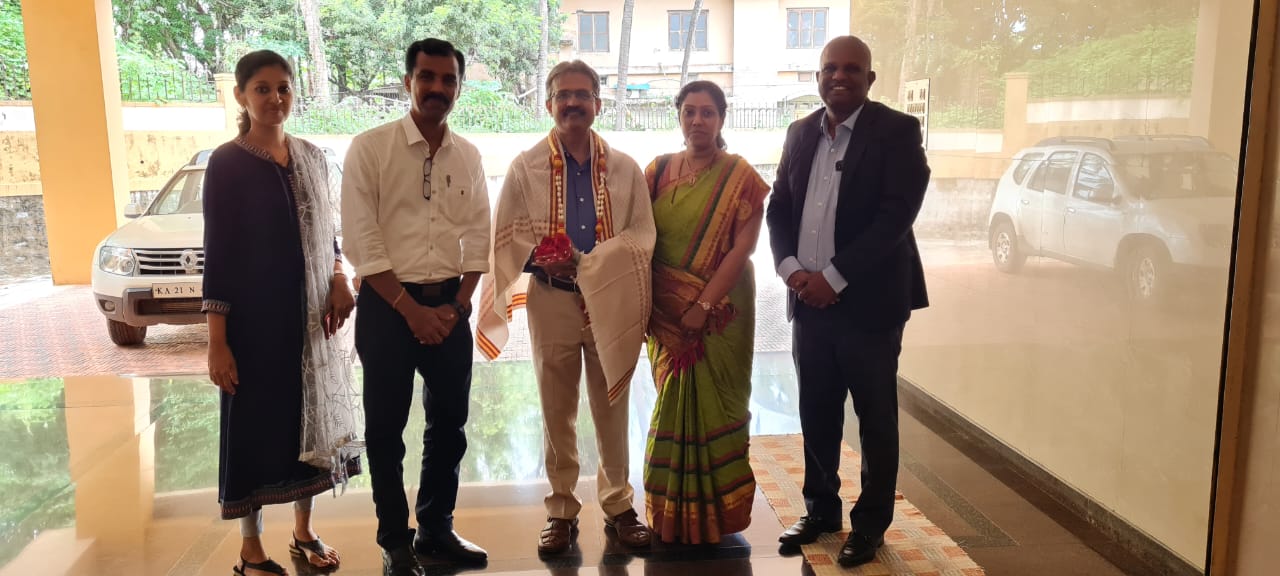 Dr. Raghuram Bhatta, President; Medical Assessment and Rating Board For Indian System Of Medicine. NCISM, New Delhi, formally visited KVG Ayurveda Pharma & Research Centre, Sullia on 14/05/2022. He was welcomed by Dr. Leeladhar D.V. Principal, KVG Ayurveda medical college and Hospital. CEO Dr. Purushotham K. G. briefed about different sections of our production unit and explained in detail about the ongoing production, working of different instruments, maintaining the standards and quality of our products and other details. Professor Dr. Harshitha M, Asst. Prof. Dr. Pavana K. B, Assit. Prof Dr. Shruthan K, Asst. Prof. Dr. Gopalakrishna N Nayak, Post Graduate students of the Department of Rasashastra and Bhaishajya Kalpna and all the staff of KVG Ayurveda Pharma and research centre assisted the visit. He appreciated the cleanliness, way of functioning and production quality of the Pharma and Research centre.