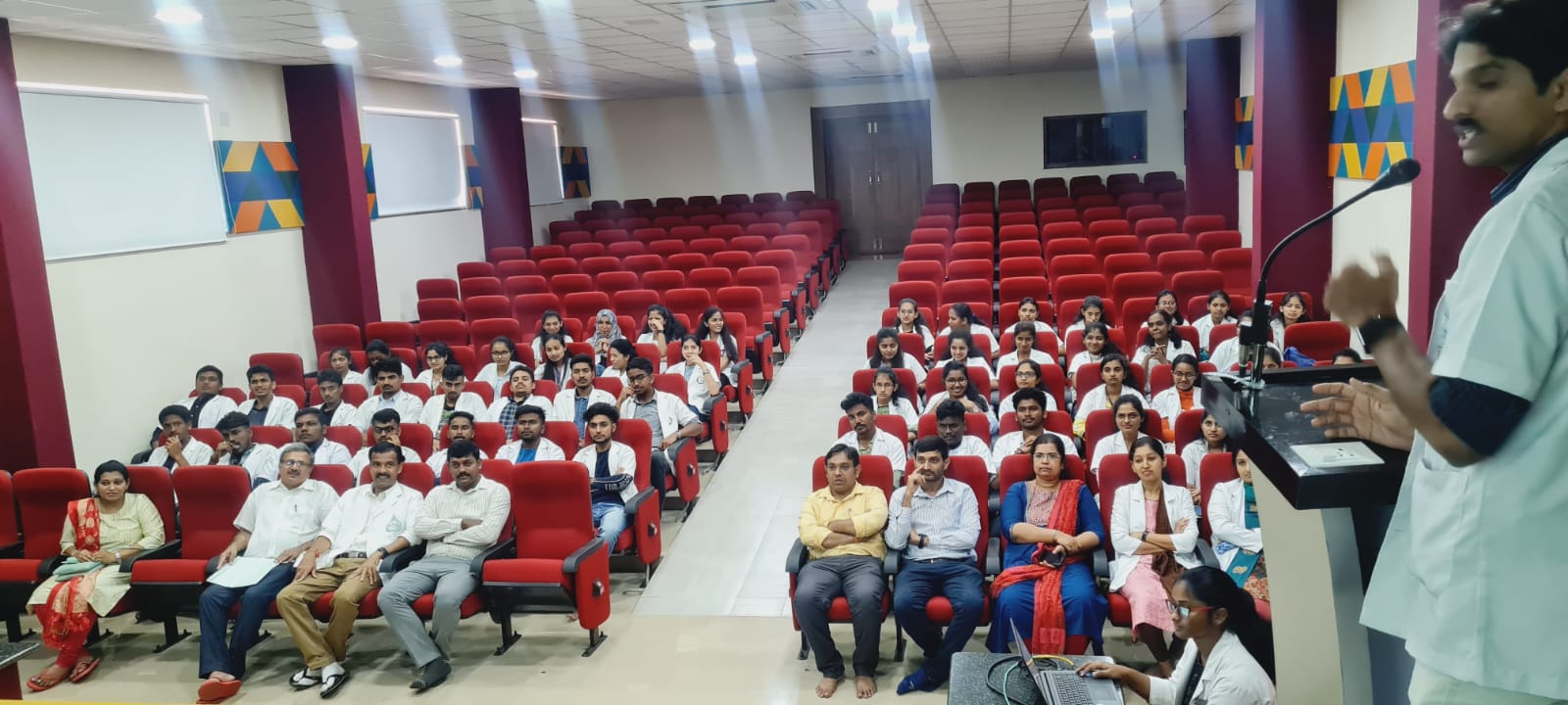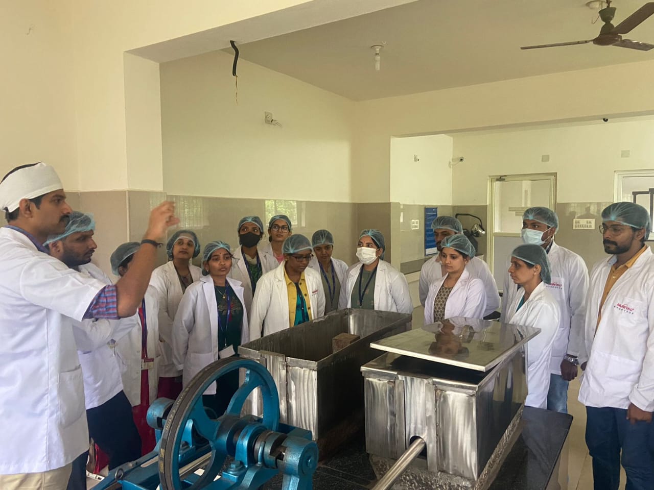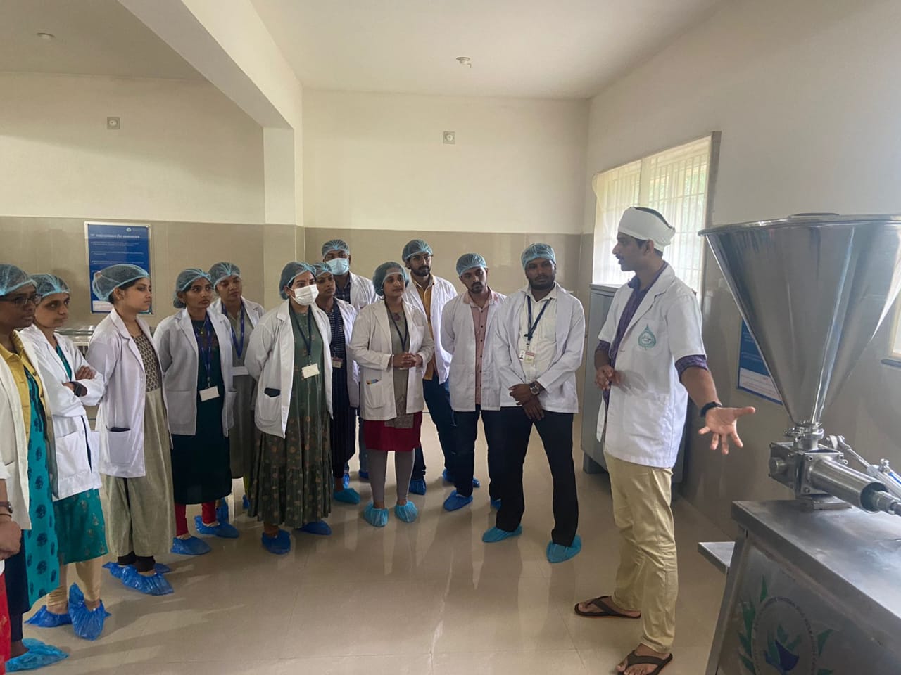 Dr. Shruthan and Dr. Pavana, Asst. Prof, Dept. of Rasashastra & Bhaishajya Kalpana explained Production and Quality Control sections of the pharmacy.