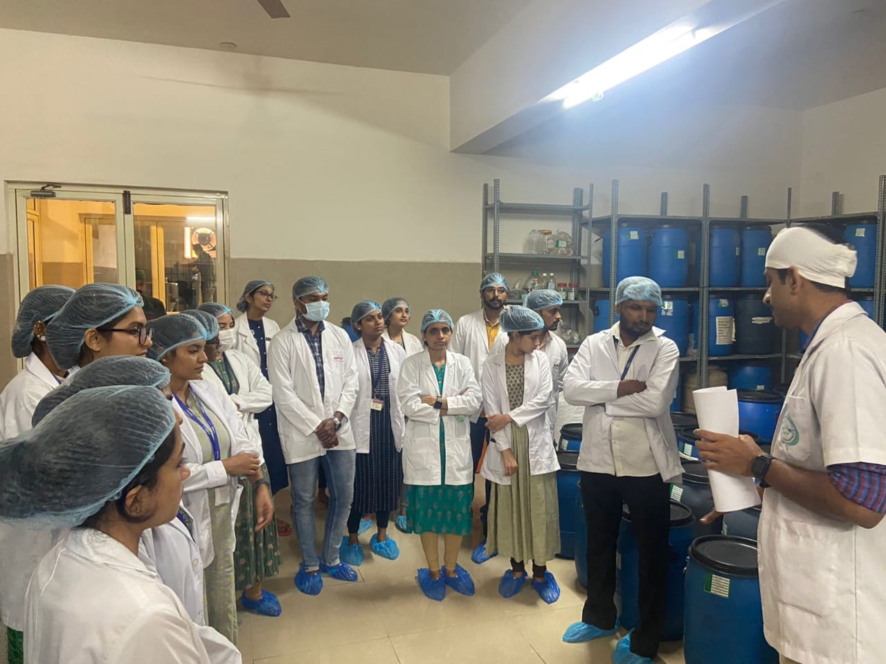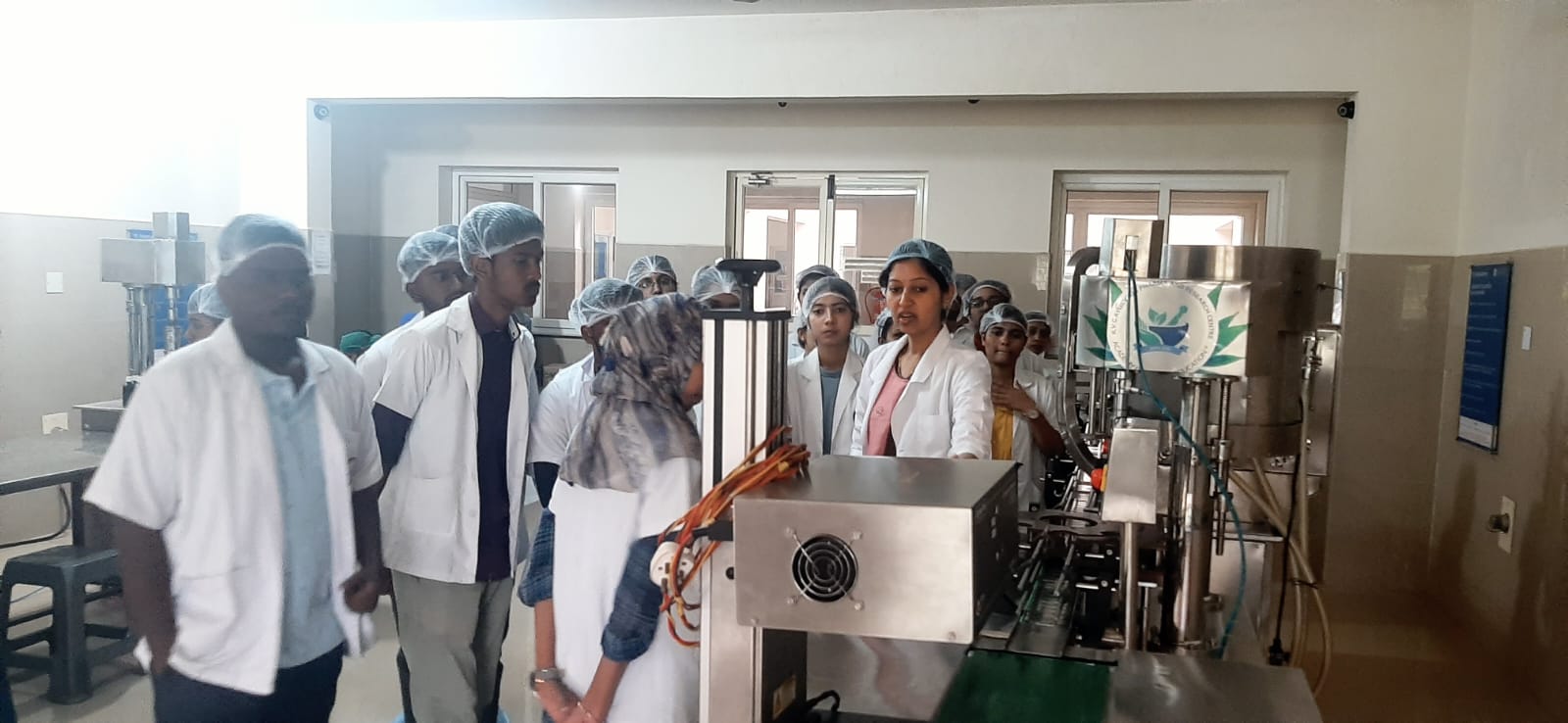 Dr. Gopalakrishna, Asst. Prof, Dept. of Rasashastra & Bhaishajya Kalpana explained Production and Quality Control sections of the pharmacy followed by interaction with our CEO, Dr. Purushotham K.G. She appreciated the hygiene, maintenance, working nature of our firm and appreciated our dedicated team work.