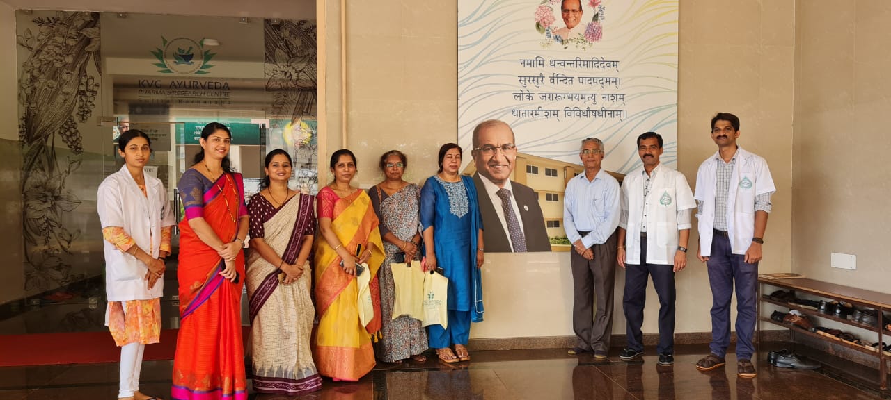 Dr. Shankar Rao- Hon. Dean VAMCH, Jabalpur, Former Pro-Vice Chancellor and Director, National Institute of Ayurveda, Jaipur and Dr. Dinesh Nayak, Professor, Dept. of Rasashastra and Bhaishajya Kalpana, Muniyal Institute of Ayurveda Medical Science, Manipal visited KVG Ayurveda Pharma and Research Centre on 07/11/2022. They visited the Production and Quality Control sections of the pharma and appreciated the hygiene, maintenance, working nature of our firm and wished us success. We had a very wonderful interaction with the stalwarts of Rasashastra & Bhaishajya Kalpana.