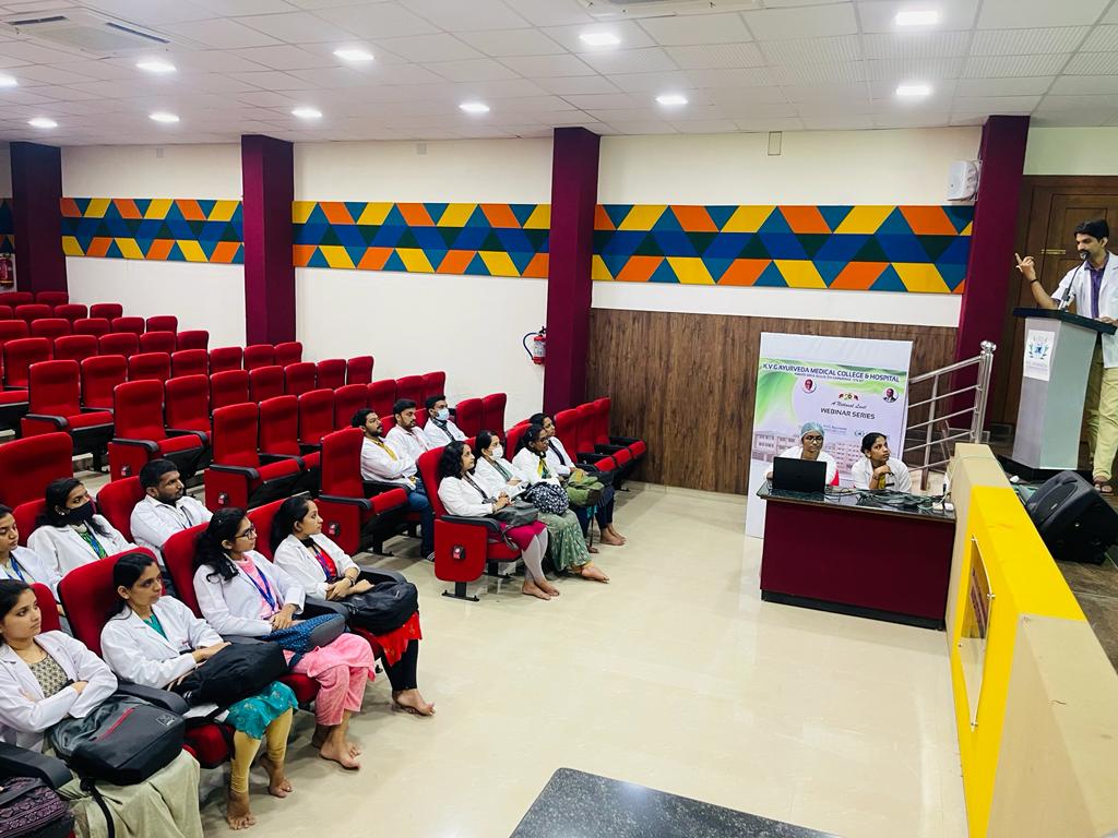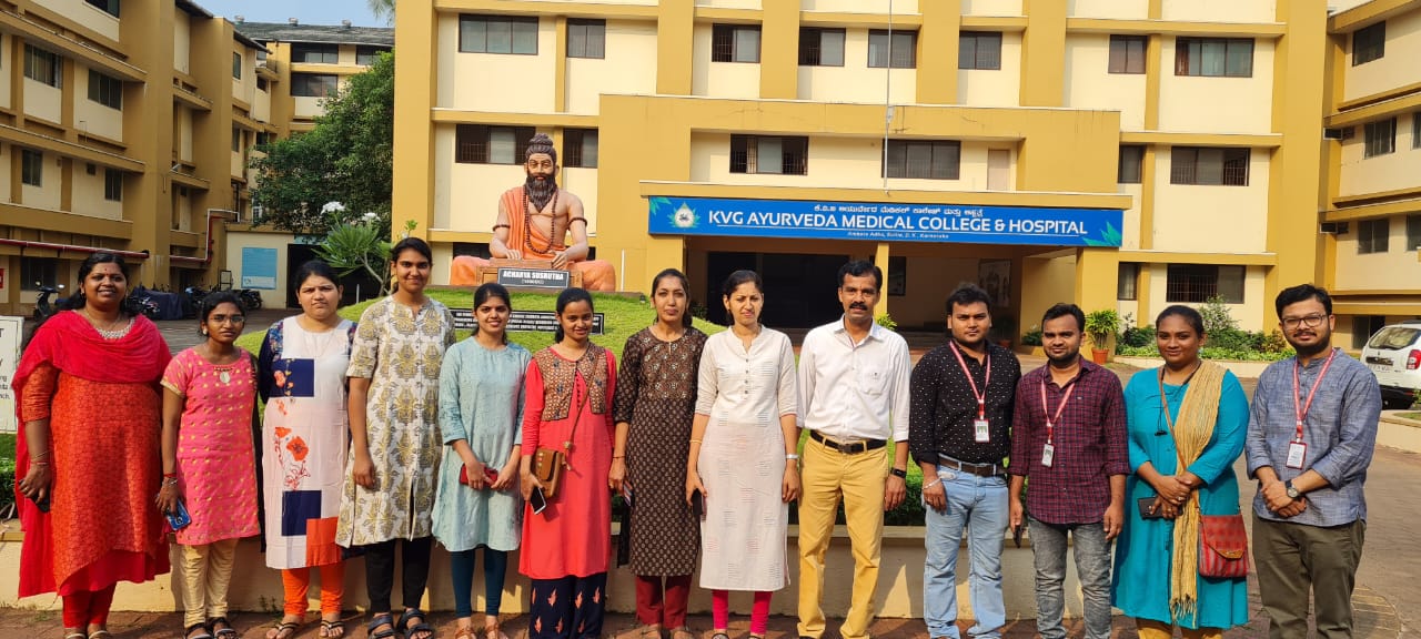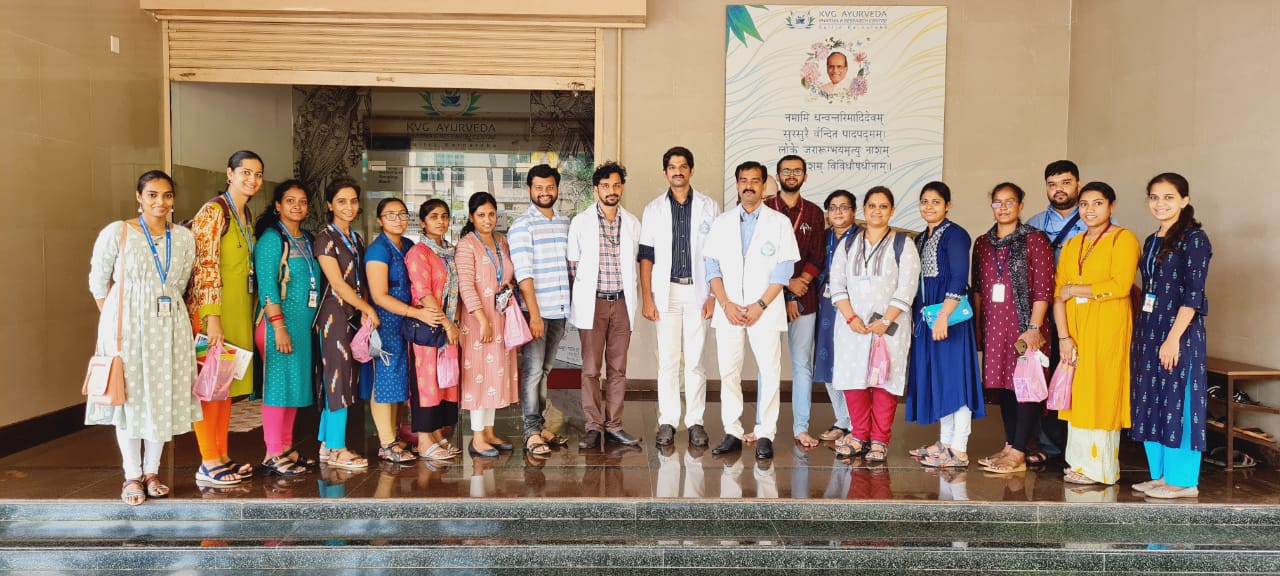 On 23/11/2022, 2nd-year B.A.M.S Students from Aroor Laxminarayan Rao (ALN RAO) memorial ayurvedic medical college and PG centre, Koppa visited our Pharmacy as a part of their academic curriculum. There were 52 students accompanied by their Vice principal Professor Dr. Pradeeep H.R. and Assistant professor Dr. Ashwini. They were welcomed and an introduction to our establishment was given by Dr. Purushotham K. G. Prof. and Head, Department of RS&BK and CEO of KVG Ayurveda Pharma and Research Centre. Later a brief note on the functioning of our Pharmacy, products manufactured in our unit, GMP guidelines were explained by the Production Manager Dr. Gopalkrishna Nayak. They were then taken to different sections of our production unit and Were described in detail about the ongoing production, working of different instruments, maintaining the standards and quality of our products and other details. Quality Control Lab Head Dr. Pavana K.B, Asst.Professor, Dept. of Rasashastra & Bhaishajya Kalpana and Analytical chemists -Mr. Rathan Kumar K.T, Miss. Shubhashree B.T and biochemist Vidhyamadhavi explained in detail the Quality control tests conducted, their need and the applications of various instruments. Professor Dr. Harshitha M and Assistant Professor Dr. Shruthan K, Department of Rasashastra and Bhaishajya Kalpana were present during the visit. Their staff and students gave very good feedback.
