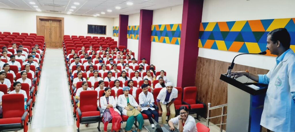 Visit to KVG AYURVEDA PHARMA AND RESEARCH CENTRE, SULLIA by New batch of First year UG students of KVG Ayurveda Medical College and Hospital as a part of Transitional Curriculum on 11/3/2023, 13/3/2023, 14/3/2023 and 15/3/2023. First year UG student’s visited the pharma and research centre in 4 divided batches. An introduction to the Establishment of our Pharmacy, its brief history, a brief note on functioning of our Pharmacy, products manufactured in our unit, GMP guidelines were explained by the Production Manager Dr.Gopalkrishna Nayak. Later they were taken to different sections of our production unit and were explained in brief about the ongoing production, working of different instruments, maintaining the standards and quality of our products and other details. Dr. Shruthan K, Asst.Prof, Dept of Rasashastra and Bhaishajya Kalpana, Dr.Pavana K.B, Quality Control Head and our Analytical chemists (Rathan Kumar K.T, Shubhashree B.T and Mrs. Vidyamadhavi) explained about the Quality control tests conducted, their need and applications of various instruments used in the lab. At the end students had interaction with Prof. Dr.Purushotham K.G., CEO and Head, Department of Rasashastra and Bhaishajya Kalpana. Dr. Harshita M, Professor, Dept of Rasashastra and Bhaishajya Kalpana, Dr. Santhosh Nayak, Asso. Prof., Dept. of Agada Tantra and Dr. Shabina, Asst. Prof., Dept. of Swastha Vritta were present during the visit.