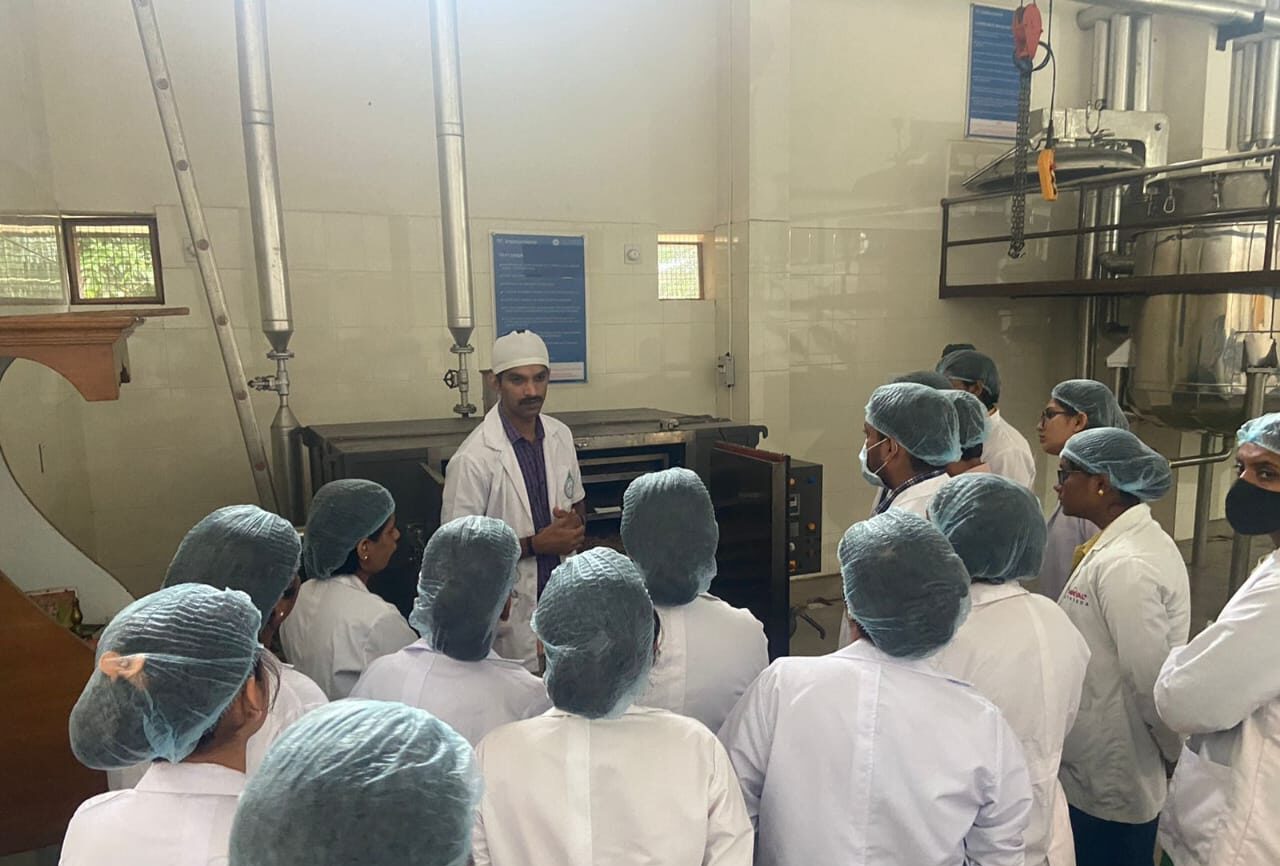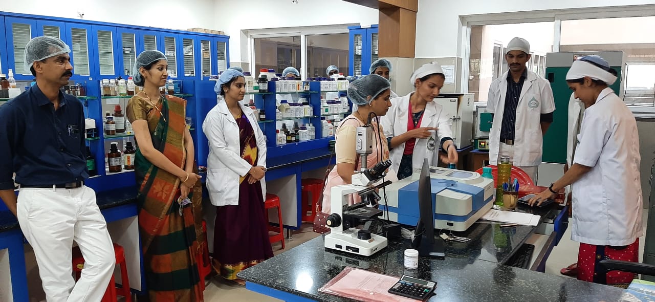 Dr. Pavana K. B. and Analytical chemists Mr. Rathan Kumar K.T., Miss. Shubhashree B.T. and Mrs. Vidya Madhavi explained about the Quality control tests conducted, their need and applications. CEO Dr. Purushotham K.G. interacted with the students during their visit.