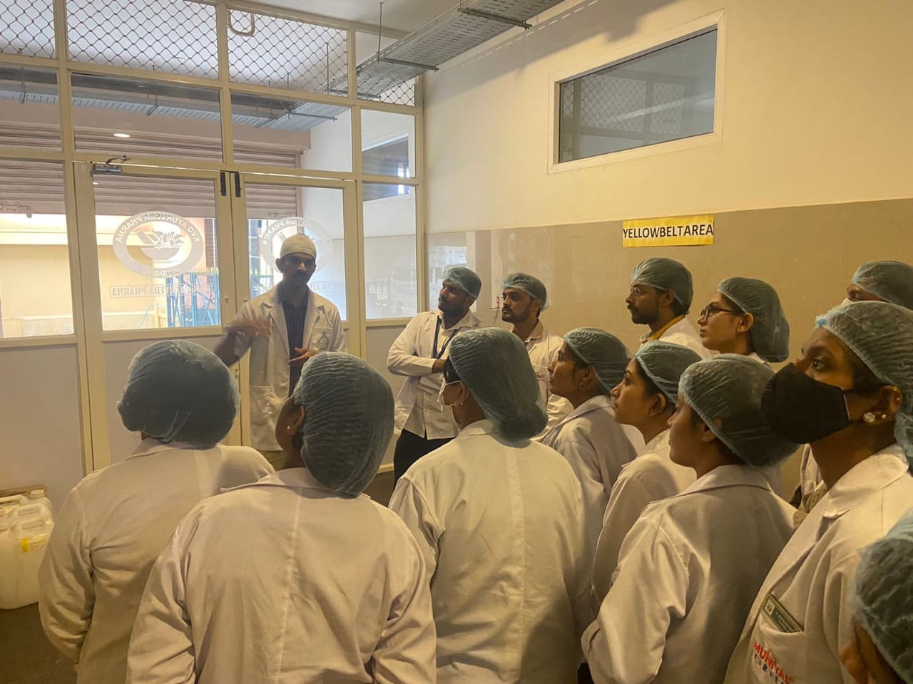 Visit of 2nd year UG students, accompanied with the Staff Dr. Matapatifrom A L N Rao Ayurveda Medical College, Koppa on 25/11/2021. CEO and Head Department of Rasashastra and BhaishajyaKalpana Prof. Dr. Purushotham K. G. briefed about the Pharma and Research Centre. Production manager Dr. GoplakrishnaNayak explained about ongoing production, working of different instruments, and various sections of the production unit. QC head Dr. Pavana K. B and Analytical chemists ( Rathan Kumar K.T, Shubhashree BT) explained the Quality control tests conducted, their needs and applications. Prof. Dr. Harshita M and Assistant Prof Dr. Shruthan K were present during the visit.